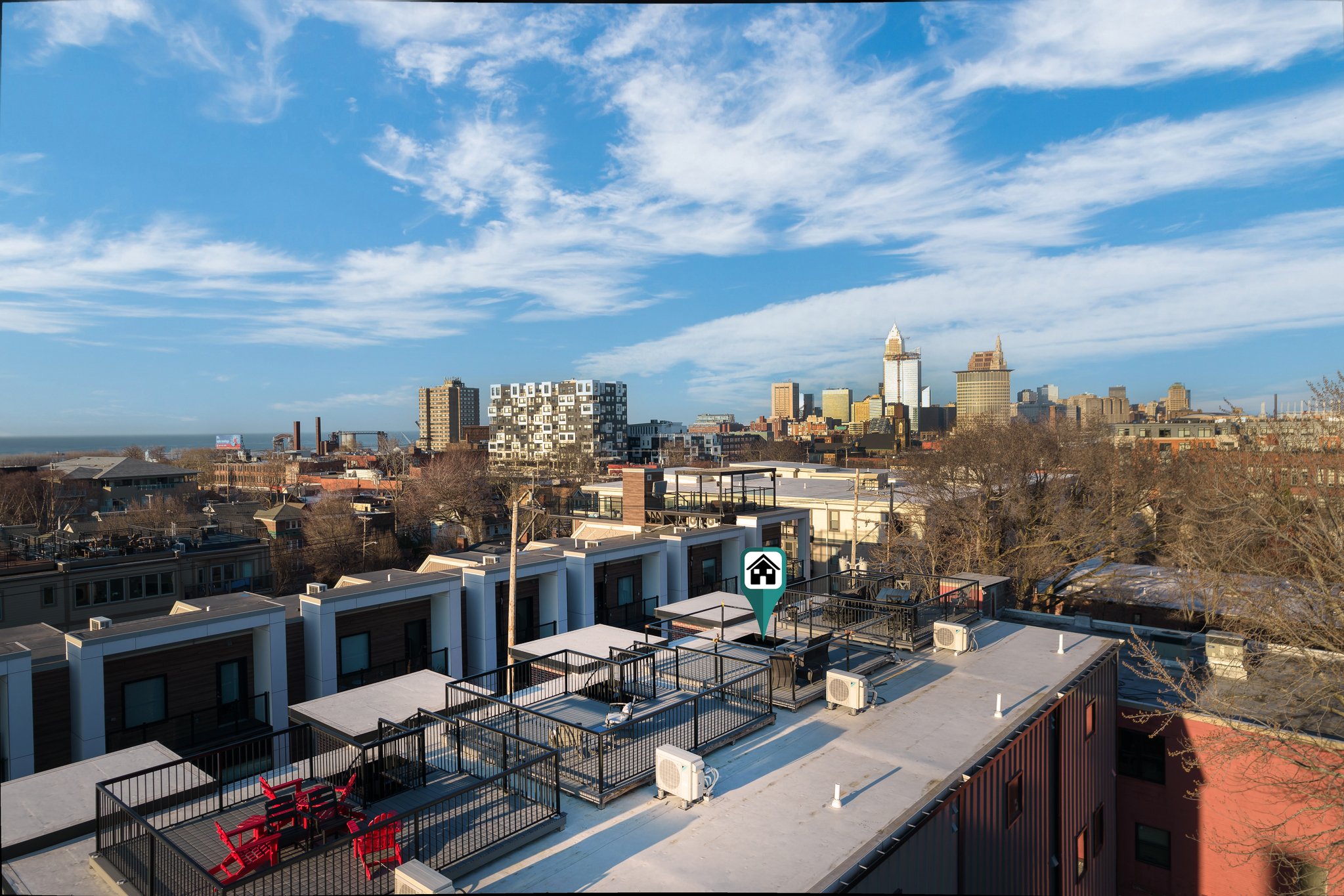 Luxury, Sophistication and Location come to mind first when touring Ohio City's newest built townhome on coveted Vine Court. Also, one of the last opportunities to secure the valuable 15-year FULL City of Cleveland tax abatement, saving the future owner an estimated $15–20K per year. A striking brick façade, paired with 4 outdoor spaces, sets the tone before stepping inside. Expansive Sierra Pacific windows, 10’ ceilings, quartzite surfaces, wide-plank wood flooring and a STUNNING floating single-stringer metal staircase create an atmosphere of refined sophistication throughout. On the main living level, a showpiece kitchen takes center stage with custom Amish-built cabinetry, oversized waterfall quartzite island, matching backsplash and top-of-the-line WiFi-enabled appliances including a 36” gas cooktop, built-in microwave and counter-depth refrigerator. Flows seamlessly into the sunlit living area and a dining space with a slider to an exterior balcony. Each of the 3 bedrooms is its own private haven, featuring tiled baths/showers and high-end custom floating vanities with quartzite counters. The primary is a true retreat with walk-in closet, walk-in shower, lounge/office nook and balcony. The top interior level features a versatile 3rd bedroom with expansive entrance allowing it to function as a bedroom or additional living space. A custom wet bar anchors the extra wide hallway leading guests directly to the double outdoor terrace. A gorgeous full bath completes this floor. The partially covered terrace invites three-season gatherings while the rooftop terrace delivers sweeping views of Lake Erie and the city skyline. A heated, EV ready 3-car garage is a rare find in the area. All of this is just steps from Ohio City’s best cafés, boutiques, and galleries, with quick access to downtown, Edgewater Park, Tremont, and Gordon Square. Thoughtfully crafted with top-tier finishes and green-energy compliance, this home delivers luxury with sustainability at its core.