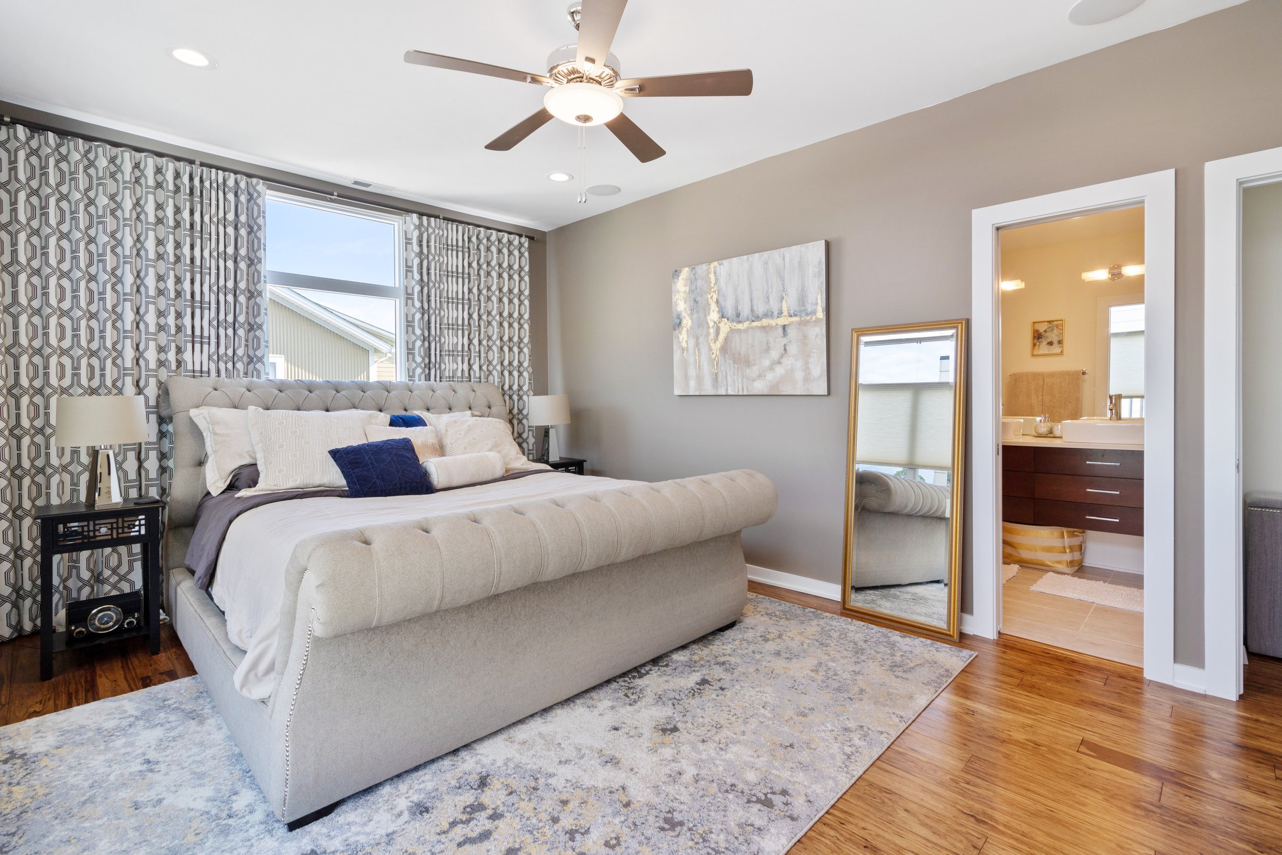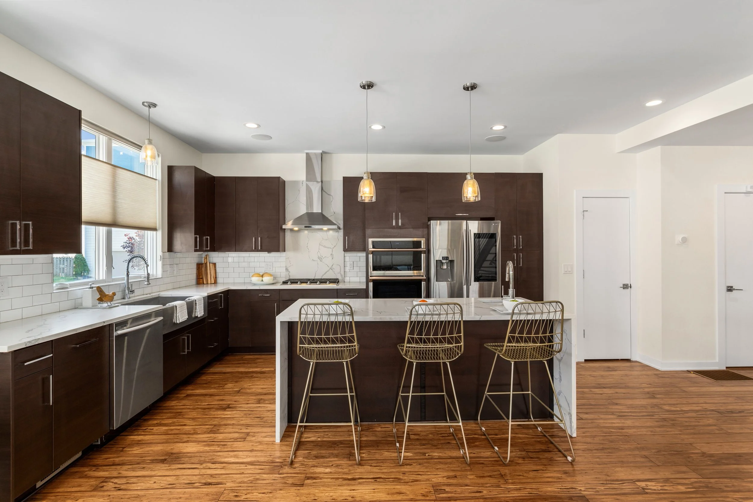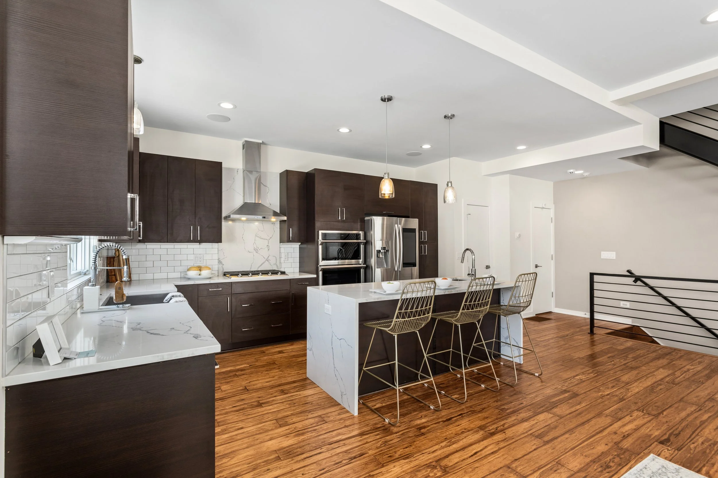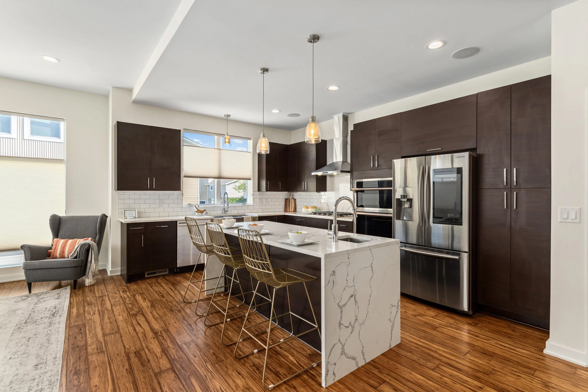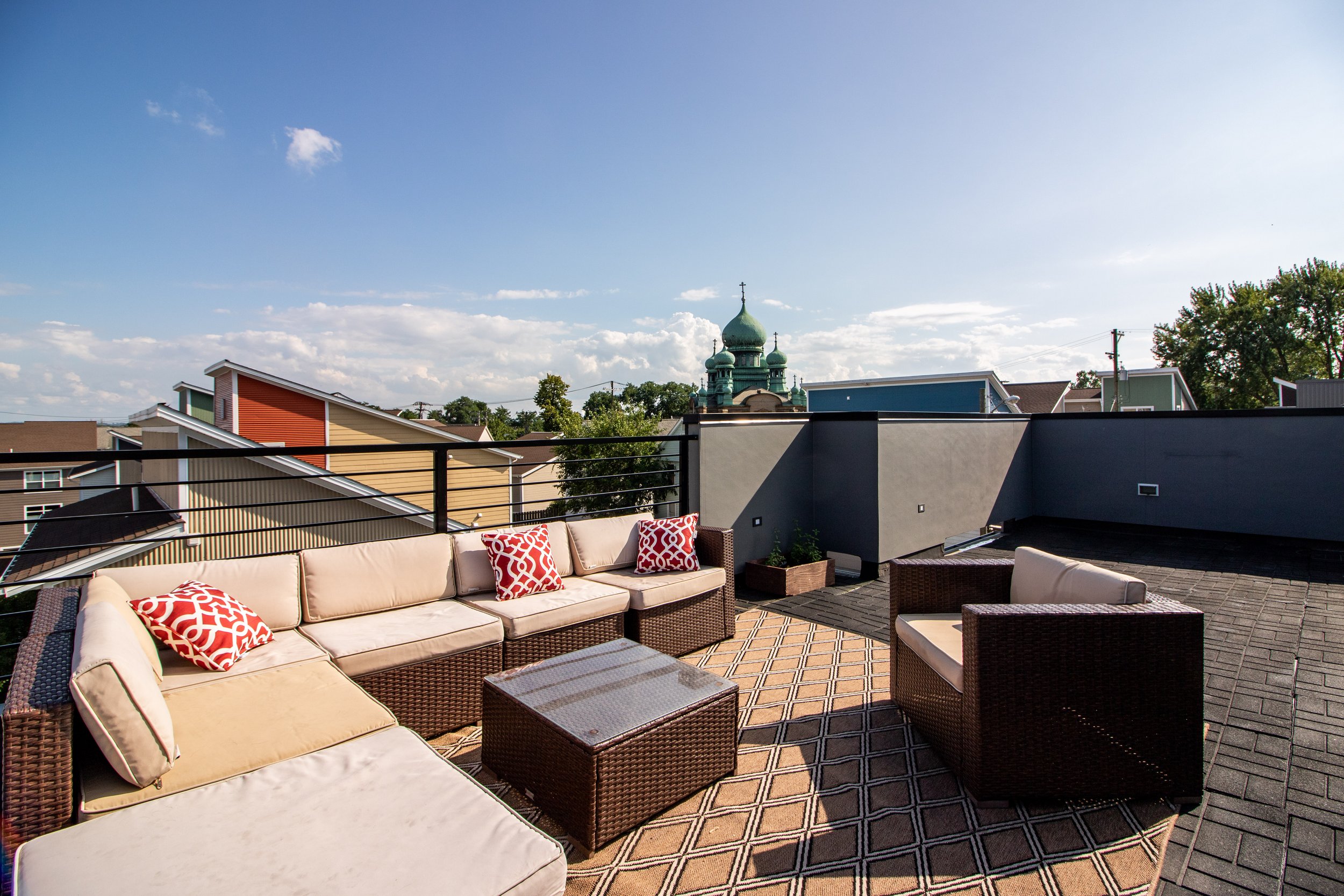 Welcome to refined, low-maintenance living in the heart of Tremont, just steps from the neighborhood’s acclaimed restaurants, cafés, galleries, and year-round energy. This exceptional property enjoys a valuable tax abatement in place through 2032, delivering meaningful savings for the next owner. Featuring two bedrooms, two full and one half baths, and an attached two-car garage, the townhome pairs elevated design with effortless everyday functionality. Custom built in 2017, every detail was thoughtfully curated. Rich bamboo flooring runs throughout, complementing the open, light-filled layout designed for both everyday living and memorable entertaining. Enter through the welcoming foyer and ascend to the main living level, where a stunning chef’s kitchen takes center stage. Quartz countertops, a dramatic waterfall island with seating, stainless steel appliances, subway tile backsplash, and abundant cabinetry create a space that is as beautiful as it is practical. The kitchen flows seamlessly into the expansive living area, where oversized windows invite in natural light and frame the urban surroundings. The third floor hosts a luxurious primary suite complete with a spa-inspired bath featuring a steam shower and a custom walk-in closet. A generously sized second bedroom with custom closet organization and a beautifully appointed full bath provide ideal accommodations for guests, family, nursery or a dedicated home office. At the top, a show-stopping rooftop level awaits. An indoor wet bar opens to a spacious private rooftop terrace with breathtaking views of the Cleveland skyline. Whether hosting friends under the city lights or enjoying a quiet evening above it all, this space delivers a true wow factor.