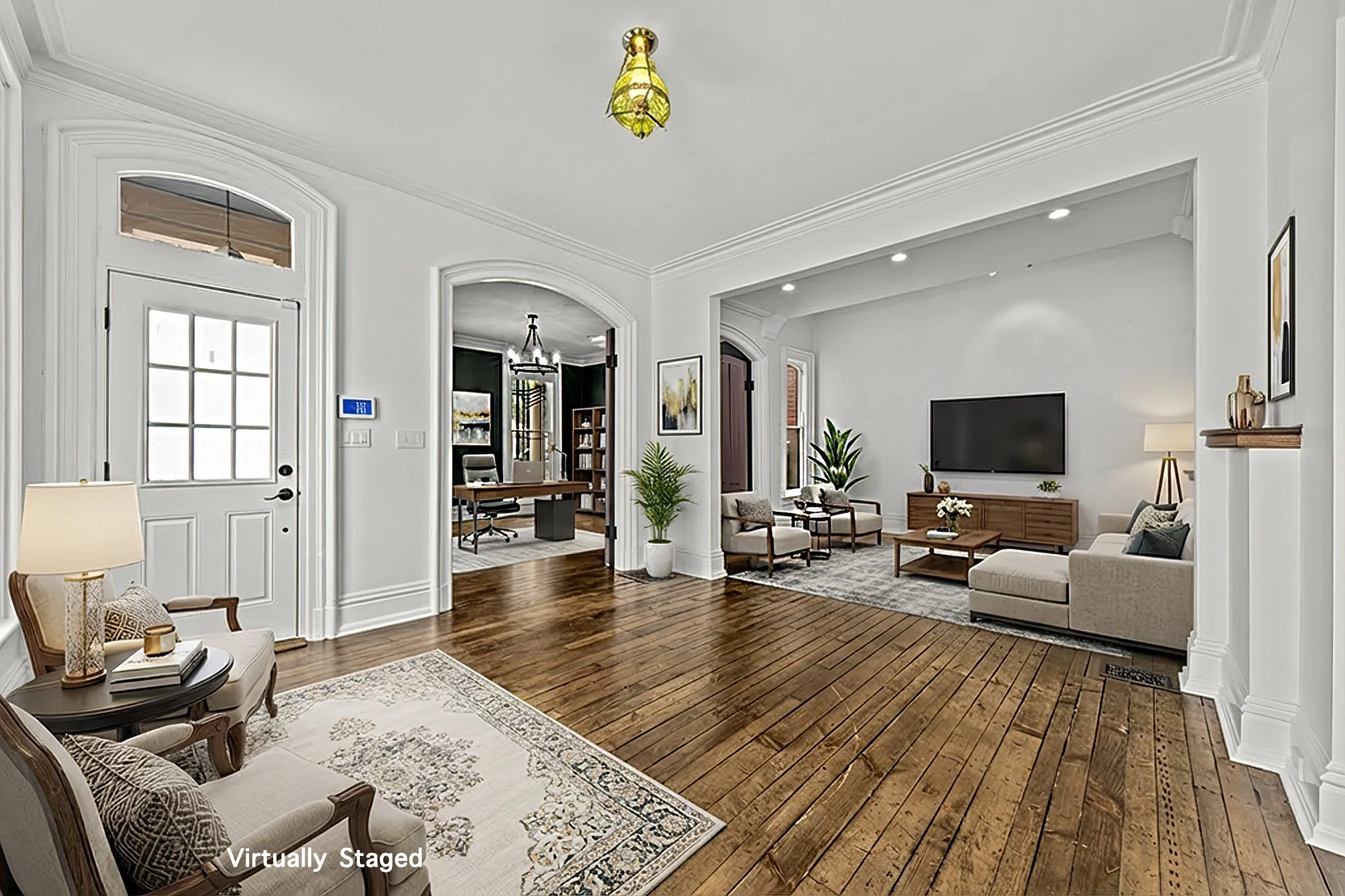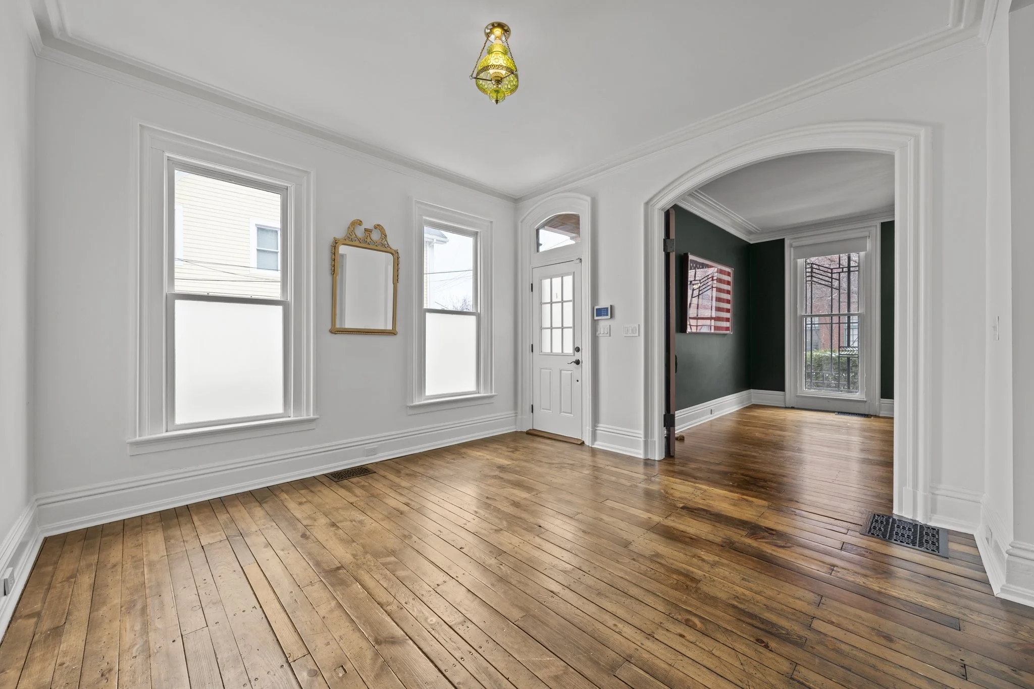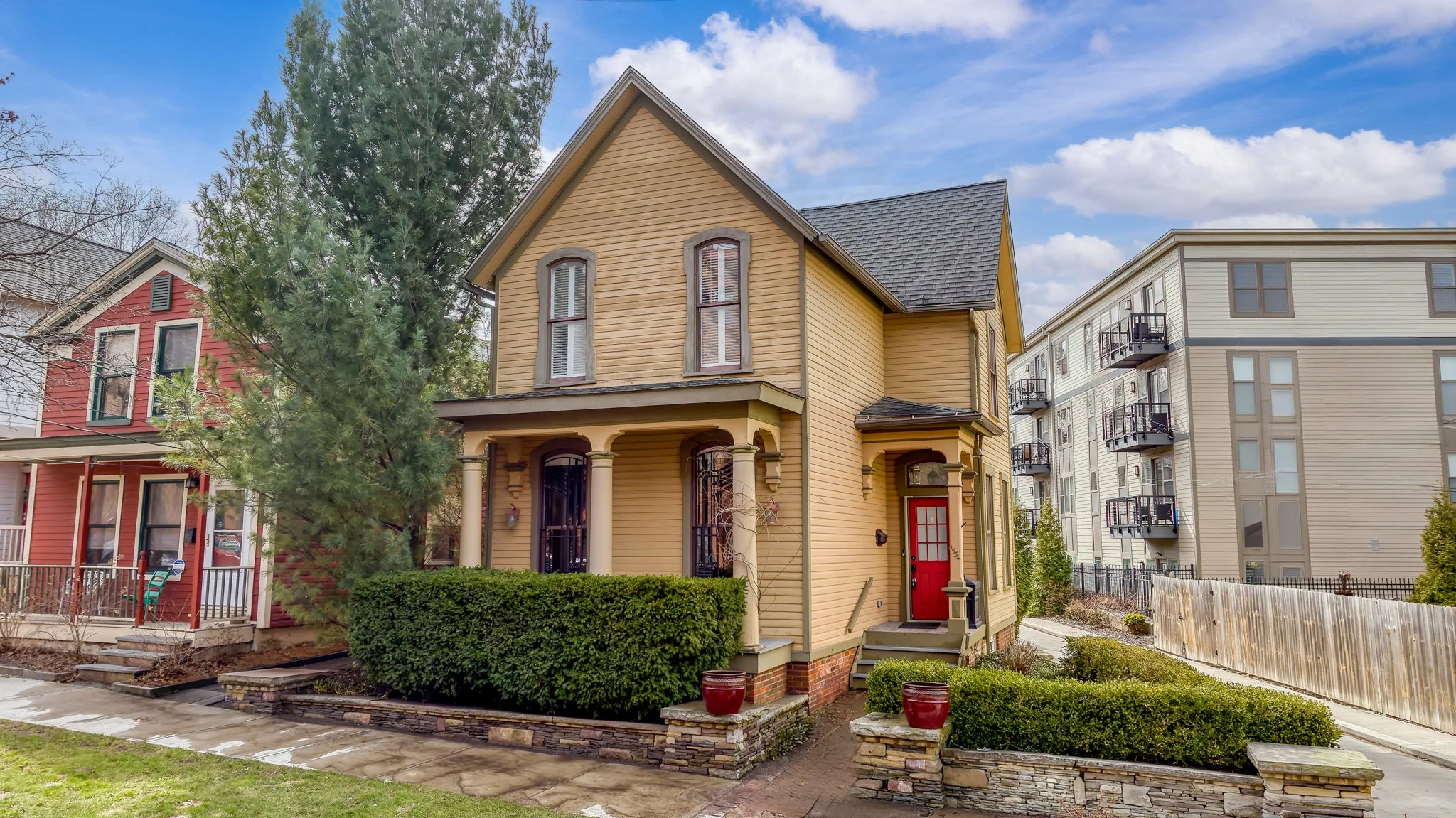 Tucked just one block from the vibrant heart of Hingetown in Ohio City, this exceptional residence delivers the rare blend of historic character and modern design that today’s buyers crave. From the moment you enter, the home feels both airy and grounded. It has soaring ceilings, oversized windows, wide-plank flooring, original trim/doors/woodwork that all culminate to preserve its timeless soul. The main living space flows effortlessly, anchored by a striking vaulted kitchen with skylight, center island and seamless connection to the dining area - making it ideal for everyday living and entertaining. A charming parlor with decorative fireplace offers flexibility as a cozy lounge or bedroom (current owners used as their first floor primary bedroom!). A spacious full bathroom with clawfoot tub/shower completes the first floor. Upstairs, the vaulted primary suite feels like a private retreat, complete with a lofted bonus space and a beautifully appointed bath featuring a double vanity, walk-in shower, whirlpool tub, closet and upstairs laundry. Another upstairs bathroom charms with its built ins. Every detail strikes a thoughtful balance between comfort and style. Outdoor living shines just as brightly. Enjoy a professionally landscaped, private patio surrounded by elegant stonework, plus a rare rooftop deck perched above the two-car garage. It is the perfect place for unwinding or hosting under the city skyline. A full basement offers ample storage options. All of this in an unbeatable location just a HALF block from neighborhood favorites, coffee shops, and dining, with easy access to downtown, Tremont and Gordon Square Arts District. Enjoy nearby trails like the Lakefront Bikeway to Edgewater Park and the Red Line Greenway. With 2027's Irishtown Bend completion, the city's newest and most impressive park and views will also just be one block away. This home lives as beautifully as it looks and allows for city living at its finest.