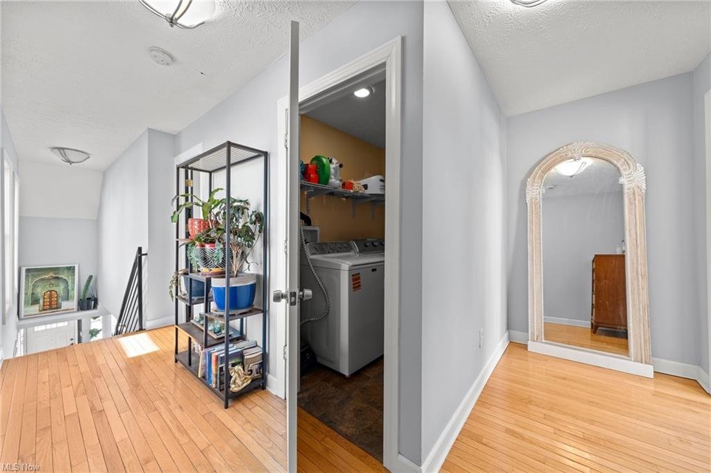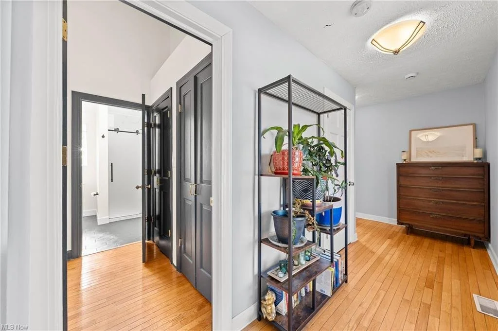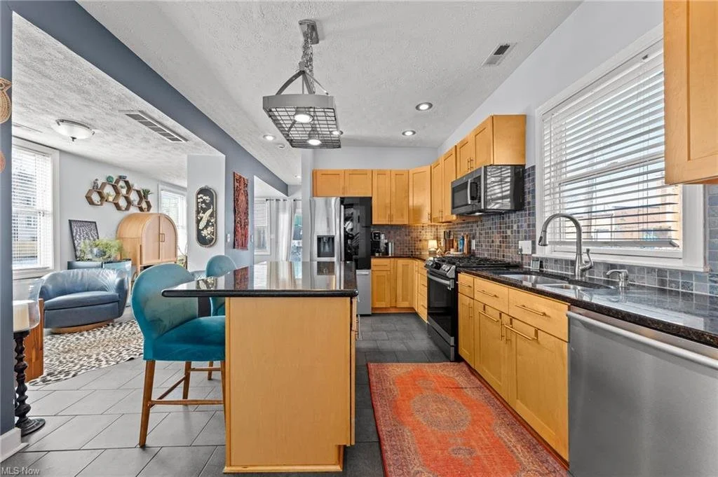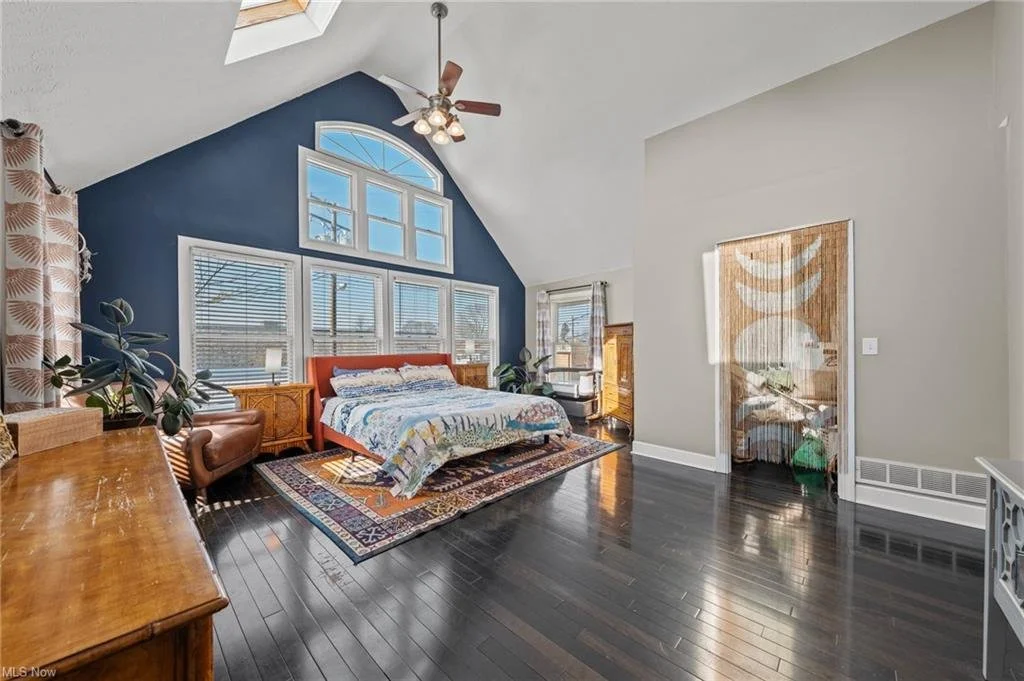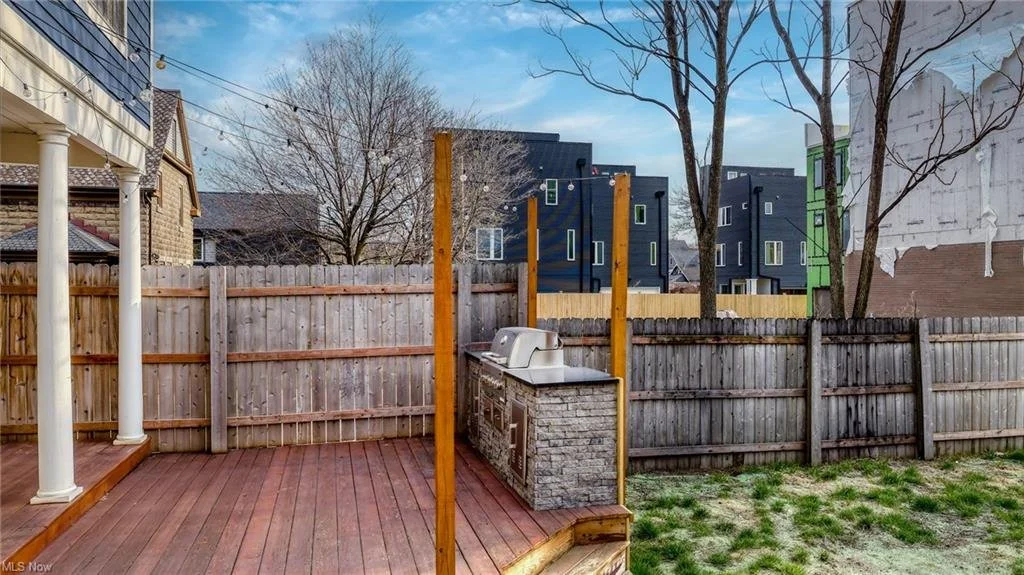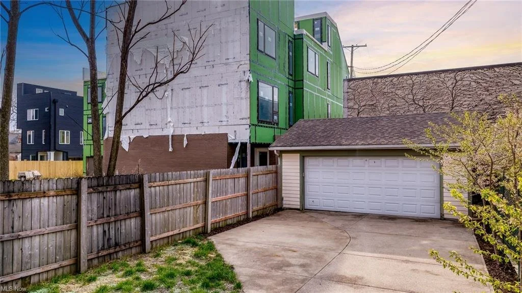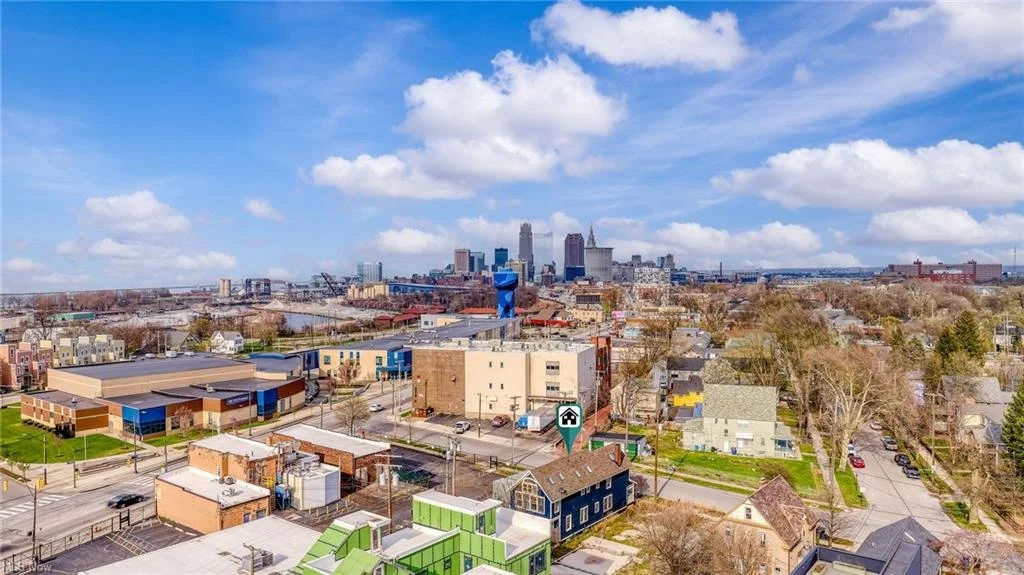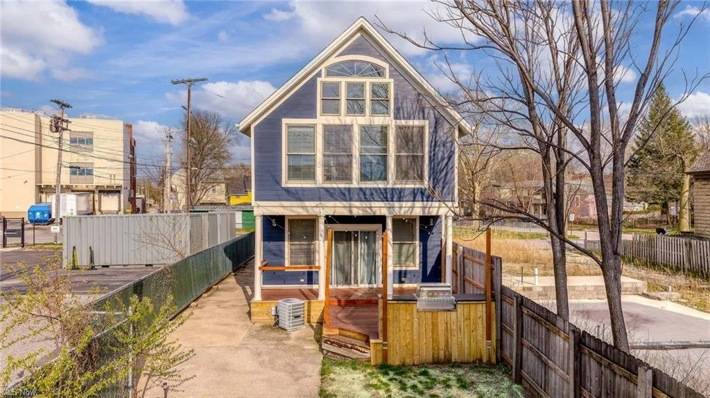 Exceptional Ohio City home with dramatic ceiling height in the sought-after Clinton Ave neighborhood. Thoughtfully renovated with entertaining in mind, this residence is defined by light-filled, open spaces and architectural impact throughout. The welcoming front porch offers a front-row seat to the vibrant energy of the Clinton/Franklin corridor, an area that continues to evolve and thrive year after year. Inside, a striking 2-story living room steals the show with soaring ceilings, expansive windows, and an electric fireplace. Hardwood floors span every level, complemented by a mix of updates that create an inviting atmosphere. The kitchen is stylish and functional, featuring maple cabinetry, stainless steel appliances, granite countertops and tile backsplash and flooring. It flows seamlessly into the living areas for effortless entertaining. A versatile rear family room offers flexible use as a home office, playroom, or rec space, with sliding doors leading to a large outside deck with built-in seating and a fully fenced backyard. Upstairs, the expansive primary suite impresses with vaulted ceilings, a wall of windows, skylights, a walk-in closet, and modern ensuite bath with dual glass vessel sinks and a tiled tub/shower combo. The 2nd bedroom is equally spacious with vaulted ceilings, dual closets, and a recently updated ensuite bath with skylight. Additional highlights include an oversized 2nd-floor laundry room, a 1st-floor half bath, detached garage and a basement waterproofed by Ohio State Waterproofing with an up-to-date, transferable lifetime warranty. Ideally positioned between the Gordon Square Arts District, Hingetown, and the W. 25th Street Market District, this home offers exceptional access to some of Cleveland’s best dining, entertainment, and urban amenities. Just two blocks from Cleveland Metroparks trailheads, enjoy direct access to Edgewater Beach, the Towpath Trail, and a quick Route 2 on-ramp for an easy one-exit commute to Downtown.