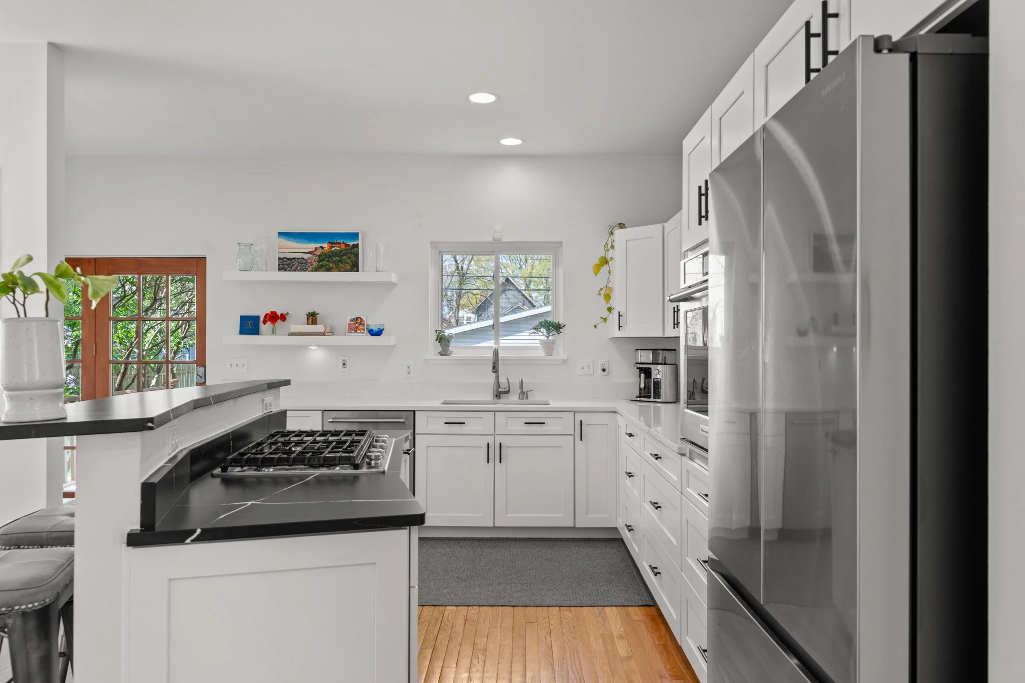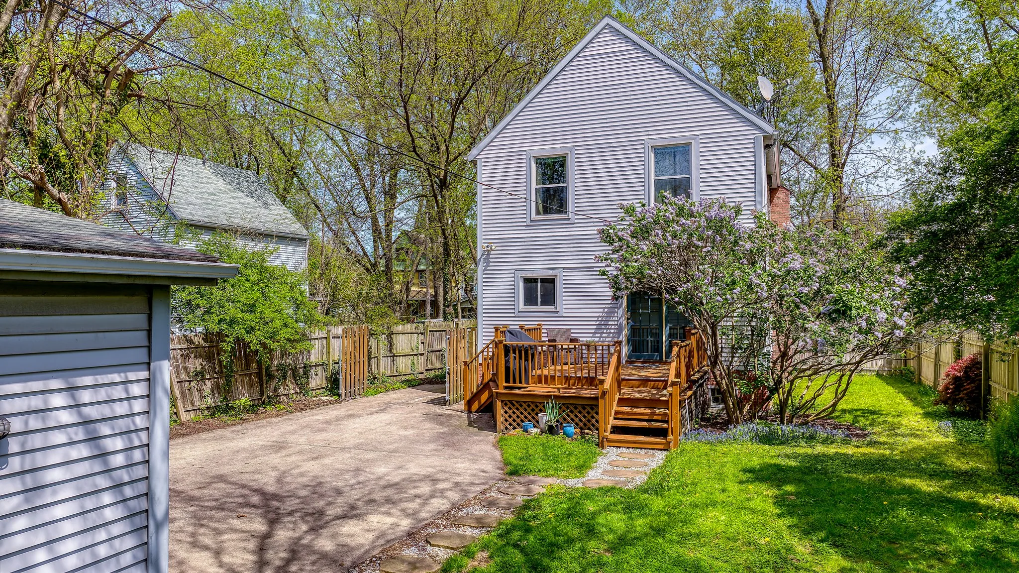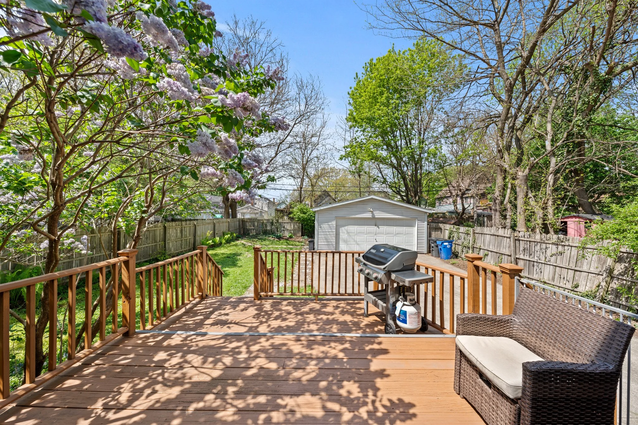 Welcome to this stunning Colonial perfectly nestled between the vibrant neighborhoods of Detroit Shoreway and Ohio City - one of Cleveland's most coveted urban corridors! From the moment you arrive, the meticulously maintained curb appeal signals the pride of ownership that defines every inch of this home. Inside, beautiful hardwood floors and soaring ceilings set an impressive tone throughout. The sun-drenched living room anchors the main level with a cozy gas fireplace and an abundance of windows that flood the space with light. Updated fans and light fixtures add a modern finishing touch throughout the main floor, while fresh interior paint creates a bright, move-in-ready canvas from top to bottom. The heart of the home is the fully remodeled kitchen, featuring quartz countertops, ample cabinetry and a suite of stainless steel appliances - all open to the dining room for effortless entertaining. Glass doors lead to a wooden deck overlooking a generous rear yard, the perfect setting for relaxing or hosting. A half bath completes the main level. Upstairs, two spacious and luminous bedrooms impress with dramatic ceilings, large windows and walk-in closets, each served by its own full bath. The freshly painted guest bedroom is move-in ready. The lower level extends the living space beautifully with a finished recreation area, half bath and laundry room complete with a newer GE smart washer and dryer. Additional peace of mind comes courtesy of a high-efficiency 75-gallon water heater, new gutters and downspouts with mesh gutter guards on both home and garage. The detached 2.5-car garage and long driveway provide abundant parking for residents and guests alike. You can find all of this just steps from Battery Park, Gordon Square Arts District, Ohio City, and Edgewater Park, with incredible restaurants, shops, theaters, and downtown Cleveland just minutes away. Homes in a location like this and a price like this do not last! One of the best tree canopied streets around!